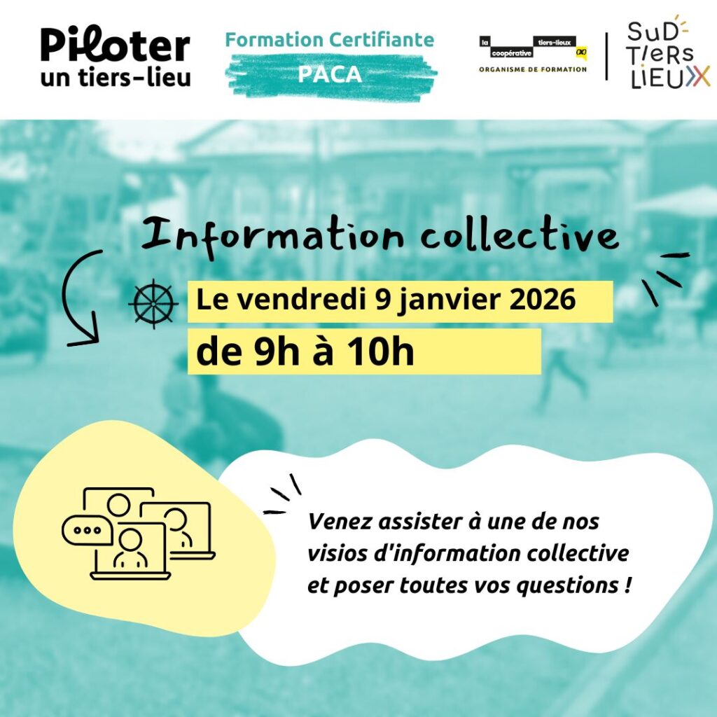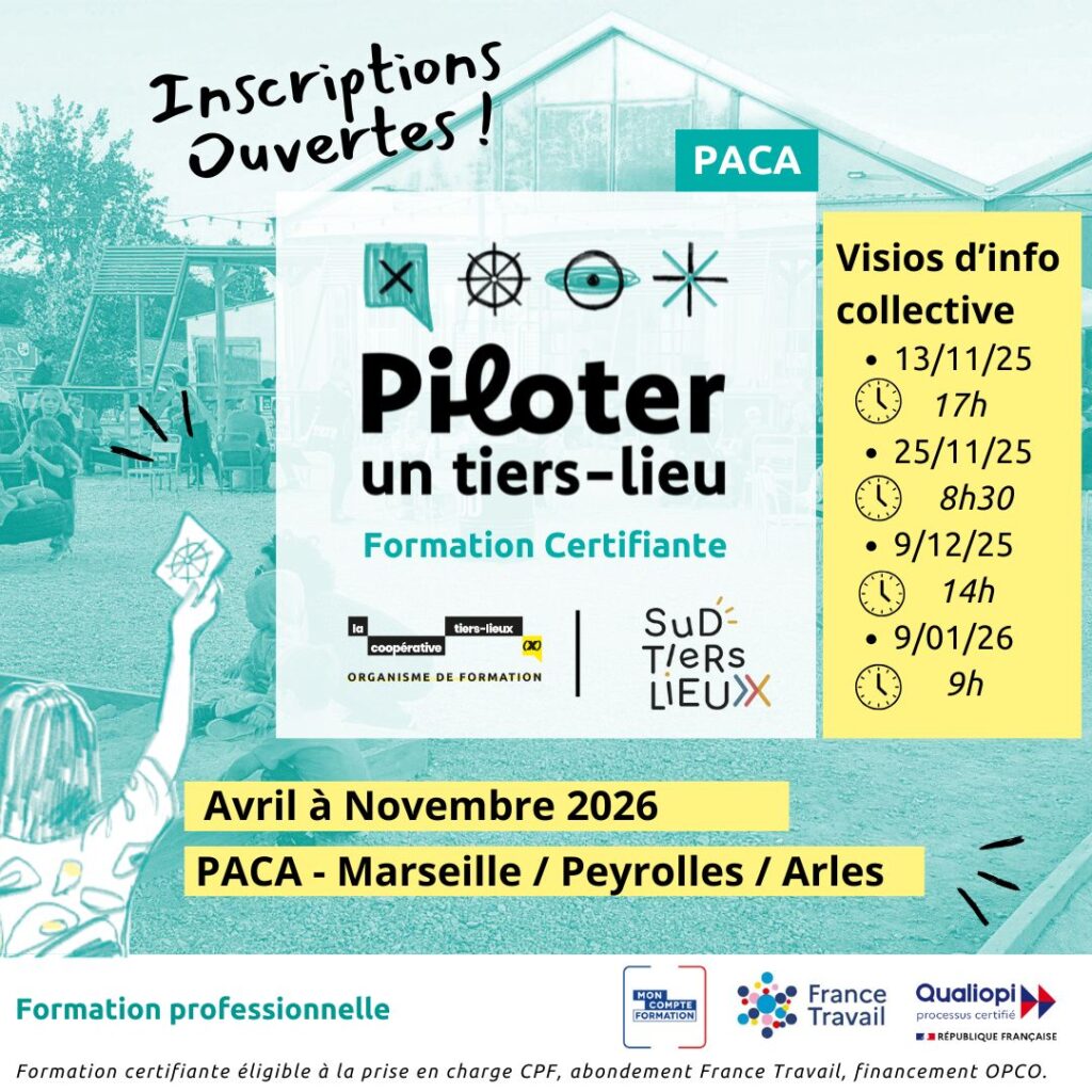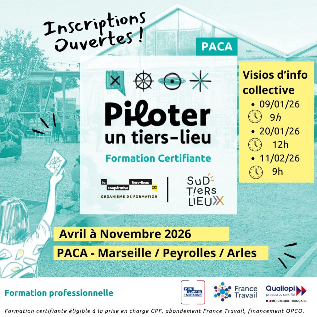 La formation Piloter un Tiers-Lieu, créée et co-portée par la Coopérative Tiers-Lieux, est disponible en région Sud. Sa quatrième session, co-portée par Sud Tiers Lieux débute en avril 2026.